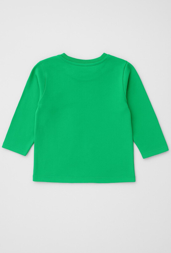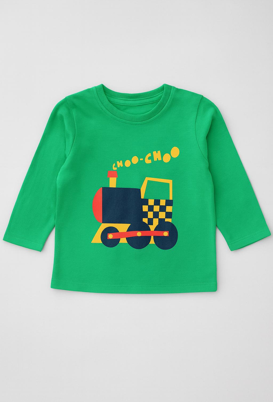 Zielona bluzka niemowlęca z nadrukiem kolorowej lokomotywy i napisem została uszyta z miękkiej i przyjaznej dla skóry bawełny. Długi rękaw sprawdzi się w chłodniejsze dni, a klasyczny krój zapewnia swobodę ruchu. Nadruk w intensywnych barwach przyciąga uwagę i nadaje całości dziecięcego uroku. Zapięcie na napy na ramieniu ułatwia szybkie przebieranie. To praktyczny i wygodny wybór do codziennego użytku.