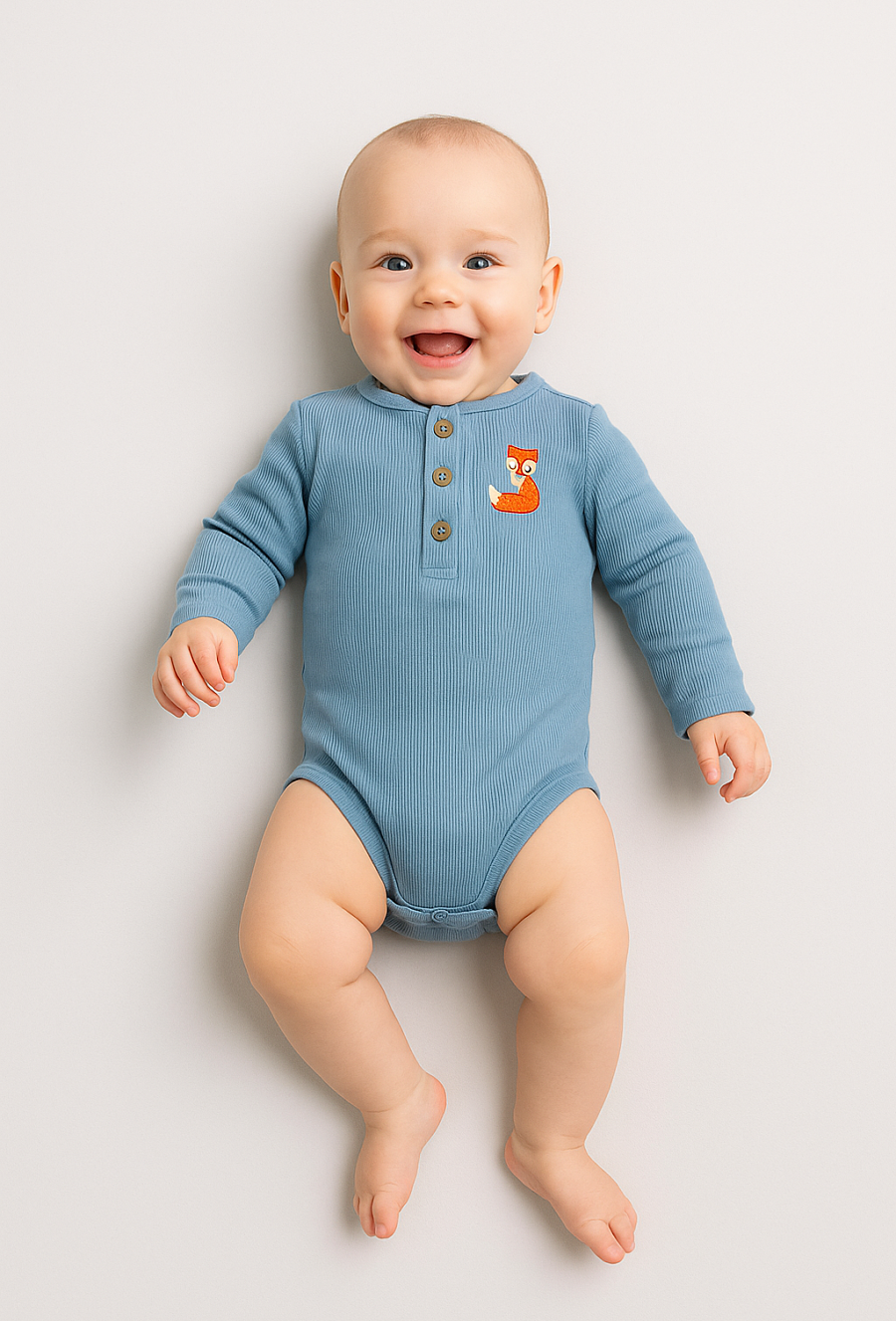 Body, które łączy wygodę, funkcjonalność i urok dziecięcej beztroski. Uszyte z miękkiej, elastycznej dzianiny bawełnianej, zapewnia maluszkowi pełen komfort podczas zabawy, drzemki i innych codziennych aktywności. Subtelny prążkowany materiał jest przyjemny w dotyku, a ozdobny haft z liskiem dodaje całości uroczego charakteru. Zapięcie na guziki przy szyjce ułatwia ubieranie, a zatrzaski w kroku sprawiają, że przewijanie jest szybkie i wygodne. Idealny wybór na co dzień dla maluszka, który dopiero zaczyna poznawać świat.