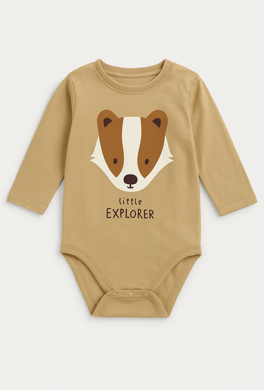Odkryj uroczą stronę dziecięcej mody z beżowym body „Little Explorer”! Body posiada nadruk z sympatycznym liskiem i napisem, który idealnie oddaje ducha małego odkrywcy. Wykonane z miękkiego materiału (95% bawełna, 5% elastan), który jest elastyczny i przyjemny dla skóry dziecka. Długi rękaw chroni przed chłodem, a wygodne zapięcie ułatwia przebieranie. To idealny wybór zarówno na co dzień, jak i na prezent.