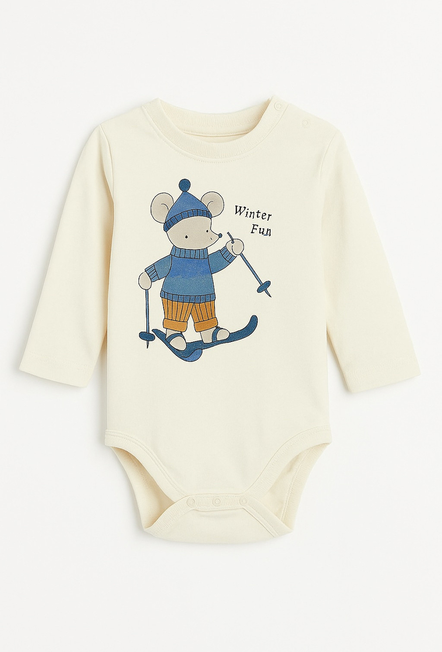 Body niemowlęce chłopięce z długim rękawem i nadrukiem narciarza
