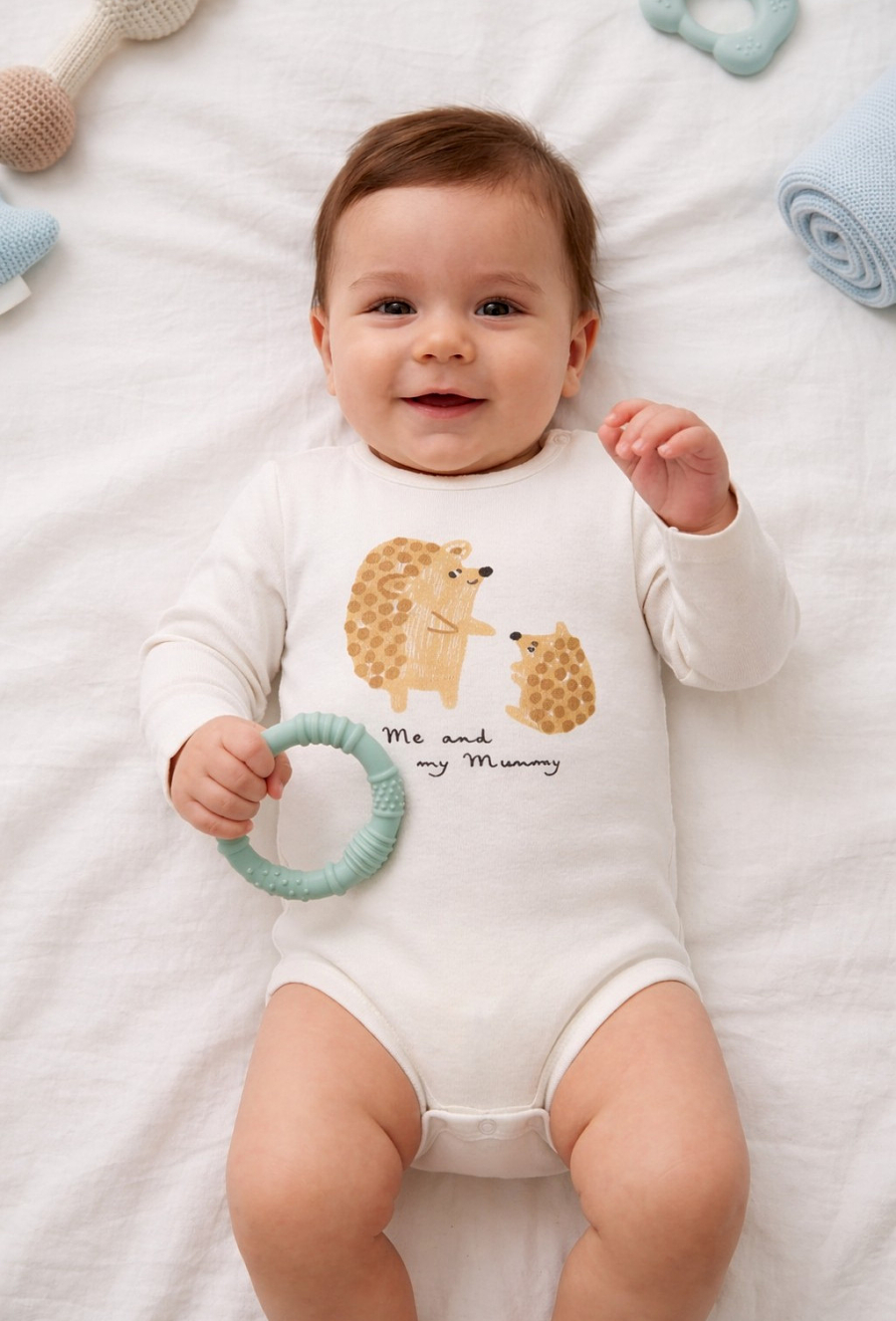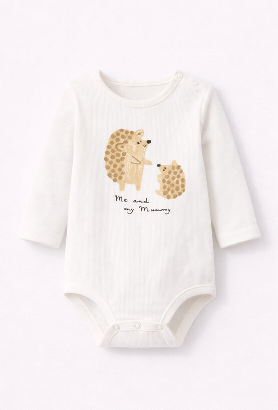 Urocze body z długim rękawem, ozdobione delikatnym nadrukiem w jeżyki. Wykonane z miękkiej, przyjemnej w dotyku tkaniny, zapewnia komfort i swobodę ruchów dla maluszka. Praktyczne zapięcie ułatwia codzienne przebieranie. Idealne na co dzień, doskonale łącząc funkcjonalność z wyjątkowym stylem.