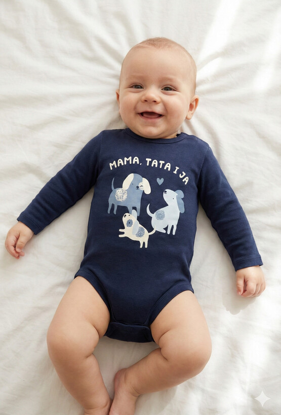 Chłopięce body z długim rękawem to wygodny i stylowy wybór na co dzień. Ozdobione uroczym tekstem i nadrukiem trzech piesków dodaje wyjątkowego charakteru. Wykonane z miękkiego materiału, zapewnia komfort noszenia i swobodę ruchów. Idealne do codziennych stylizacji – sprawdzi się zarówno w domu, jak i na spacerach.