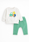 Komplet dresowy chłopięcy – zielone spodnie i bluza z haftem.