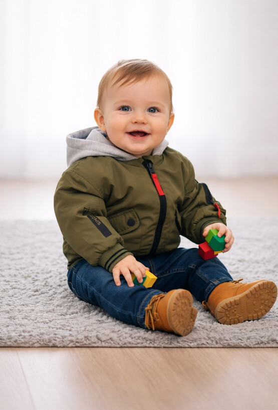 Lekka kurtka, stworzona z myślą o zmiennej pogodzie, zapewnia komfort i ciepło, jednocześnie nie ograniczając ruchów dziecka. Praktyczny kaptur chroni przed wiatrem, a bomberkowy fason dodaje jej oryginalnego charakteru – idealna na spacer w chłodniejsze dni.