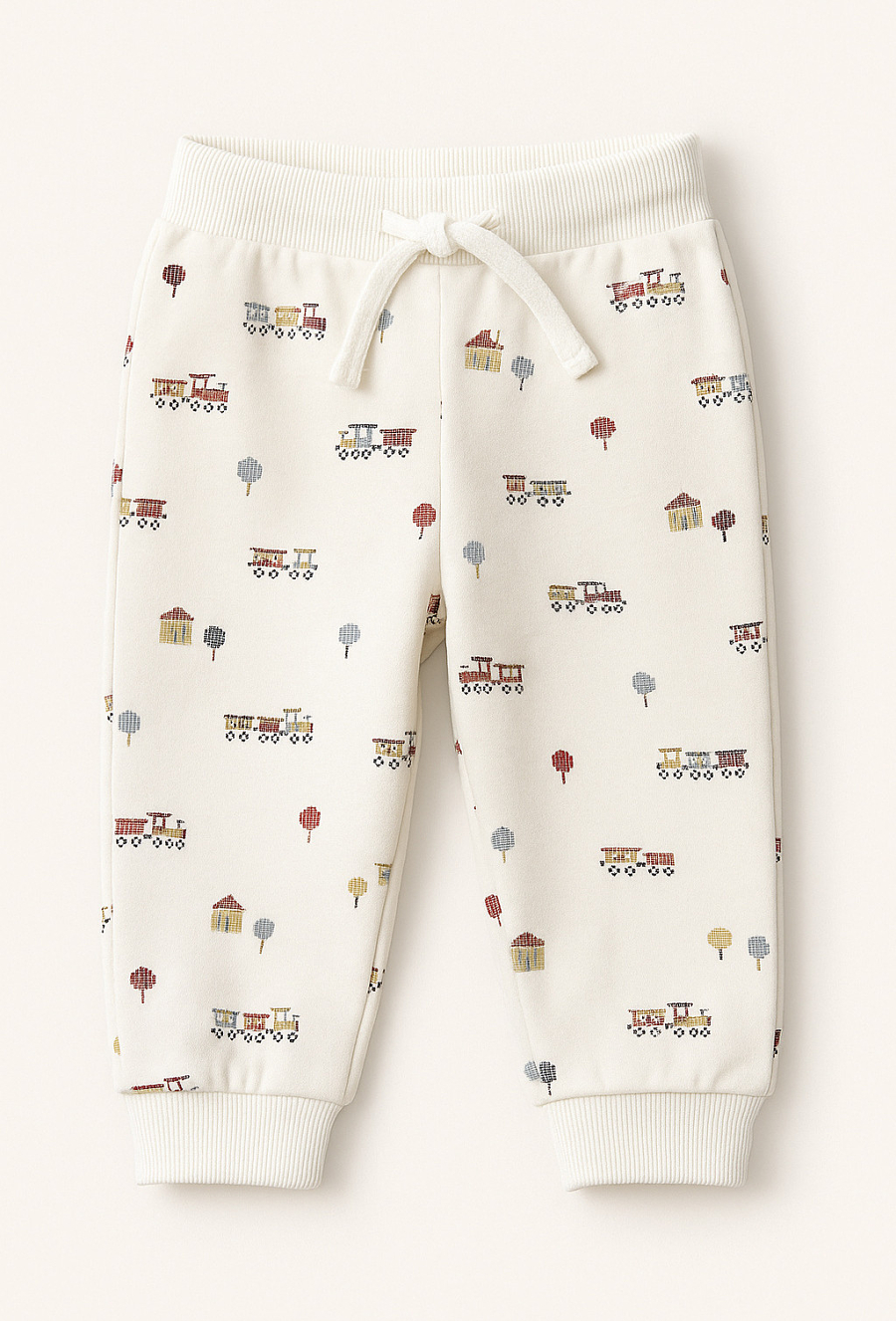 Komfortowe spodnie dresowe dla chłopca wykonane w 100% z naturalnej, miękkiej bawełny. Ściągacze w pasie i przy nogawkach zapewniają idealne dopasowanie, a wzór w kolorowe pojazdy dodaje całości uroku. Model idealny do codziennego noszenia – w domu, na spacerze czy w przedszkolu. Dla pełnego zestawu dostępna jest również pasująca bluza z tej samej kolekcji.