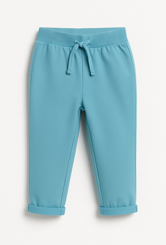 Niebieskie spodnie dresowe niemowlęce wykonane w 100% z bawełny to wygodna i praktyczna propozycja na co dzień. Elastyczny, rozciągliwy materiał jest gładki w dotyku, a wewnętrzne podbicie pętelkowe zapewnia dodatkowy komfort noszenia. Spodnie zostały wyposażone w regulację w pasie za pomocą sznurka. Miękki materiał dobrze pracuje wraz z ruchem malucha, nie krępując aktywności podczas zabawy, odpoczynku czy spacerów. To uniwersalny element dziecięcej garderoby, który łatwo zestawić z body, bluzką lub bluzą z kolekcji 51015.