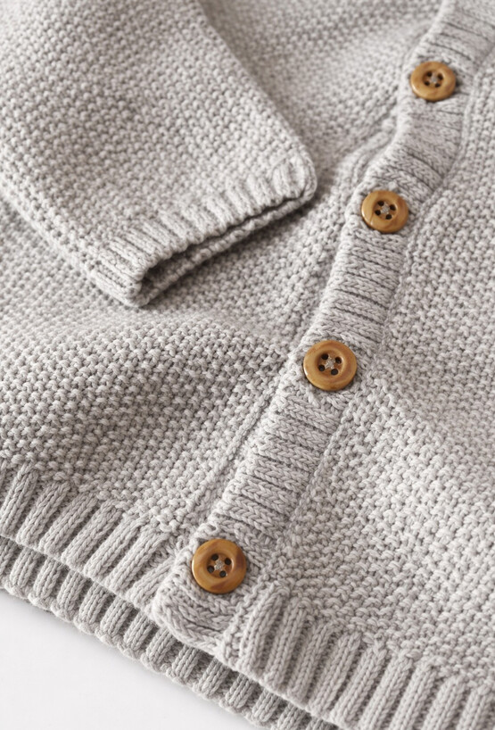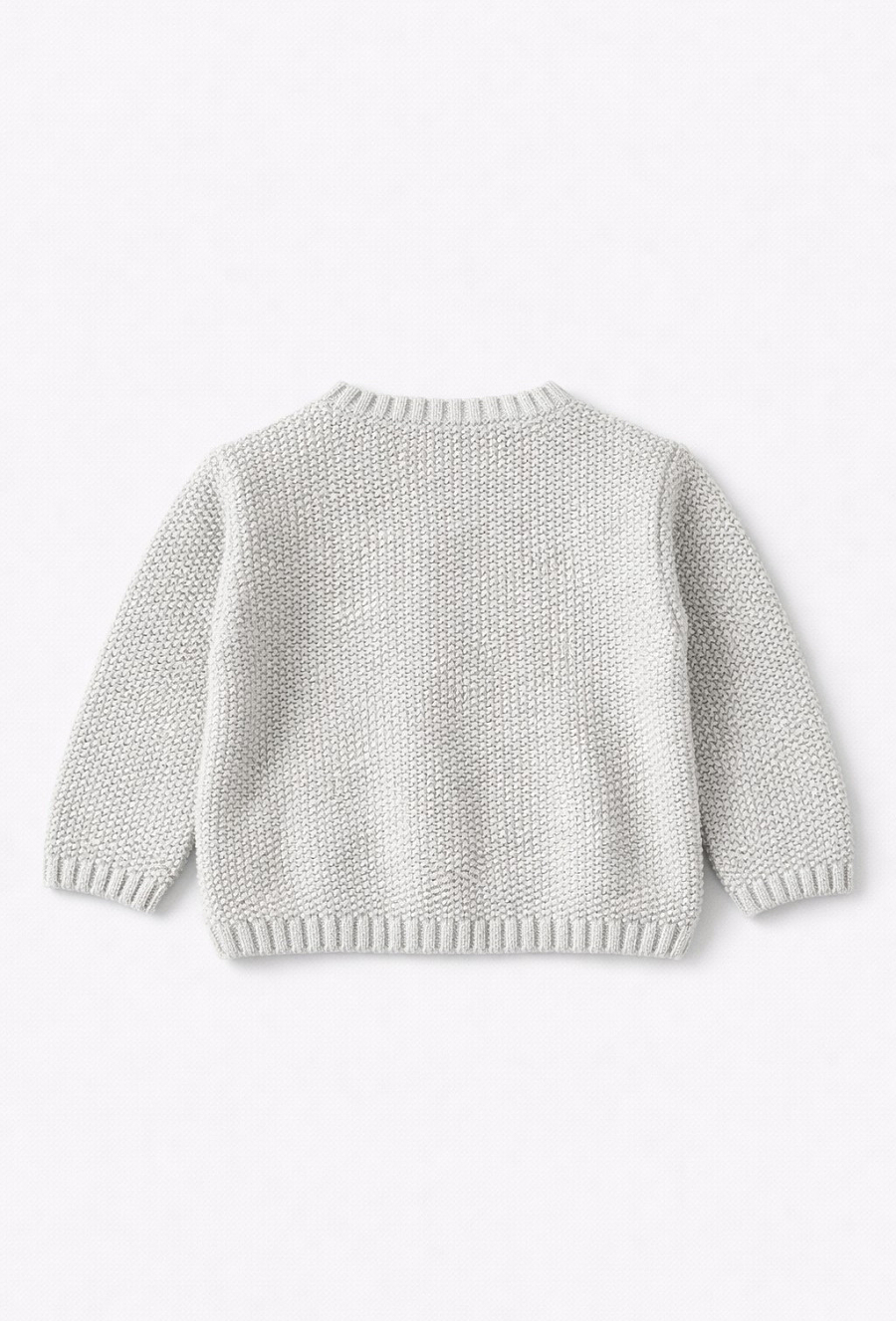 Miękki i wygodny sweter rozpinany wykonany w 100% z bawełny to idealna warstwa na chłodniejsze dni. Naturalny materiał jest przyjazny dla delikatnej skóry niemowlęcia, zapewniając komfort noszenia. Praktyczne zapięcie ułatwia ubieranie, a klasyczny fason sprawdzi się w codziennych stylizacjach.