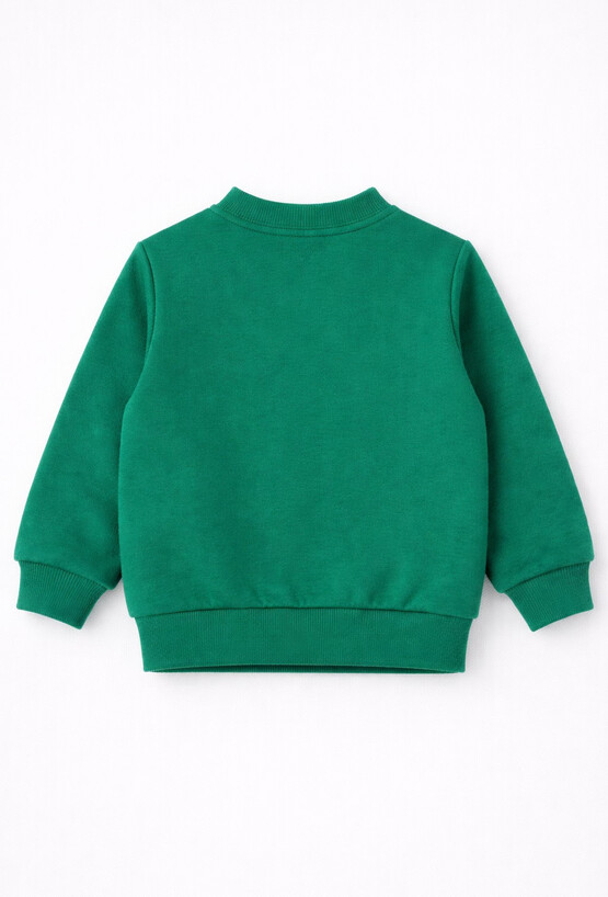 Miękka i wygodna bluza w zielonym kolorze z praktyczną stójką, to doskonały wybór dla najmłodszych. Rozpinany fason ułatwia zakładanie, a delikatny materiał zapewnia komfort noszenia przez cały dzień. Idealna na spacery, zabawę i codzienne aktywności maluszka.
