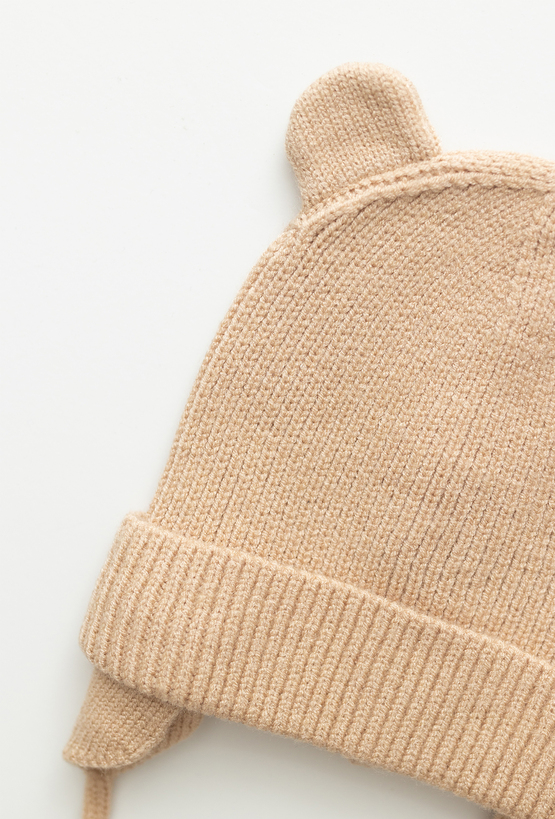 Urocza beżowa czapka niemowlęca z uszkami to idealny dodatek na chłodniejsze dni. Wykonana z miękkiej, przyjemnej w dotyku dzianiny, zapewnia maluszkowi komfort i ciepło. Model posiada przedłużone boki oraz praktyczne wiązanie pod szyją, dzięki czemu czapeczka dobrze trzyma się na głowie i chroni uszy przed wiatrem. Doskonale sprawdzi się zarówno na spacer, jak i do codziennych stylizacji. Świetna jako element wyprawki oraz pomysł na prezent dla najmłodszych.