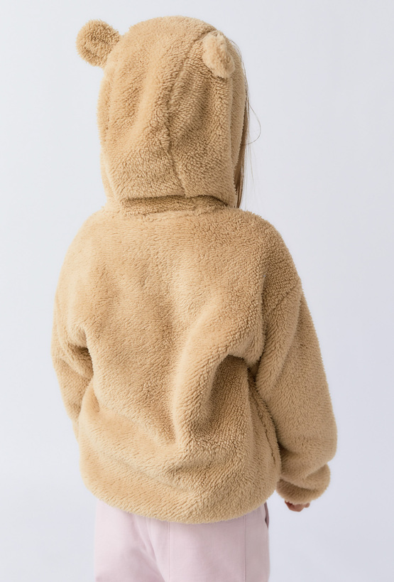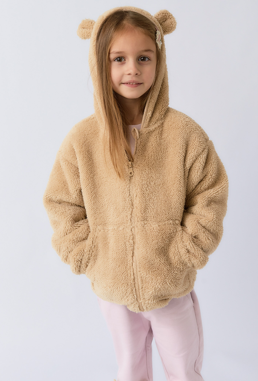 Dziewczęca bluza rozpinana z kapturem i uszami – beżowa