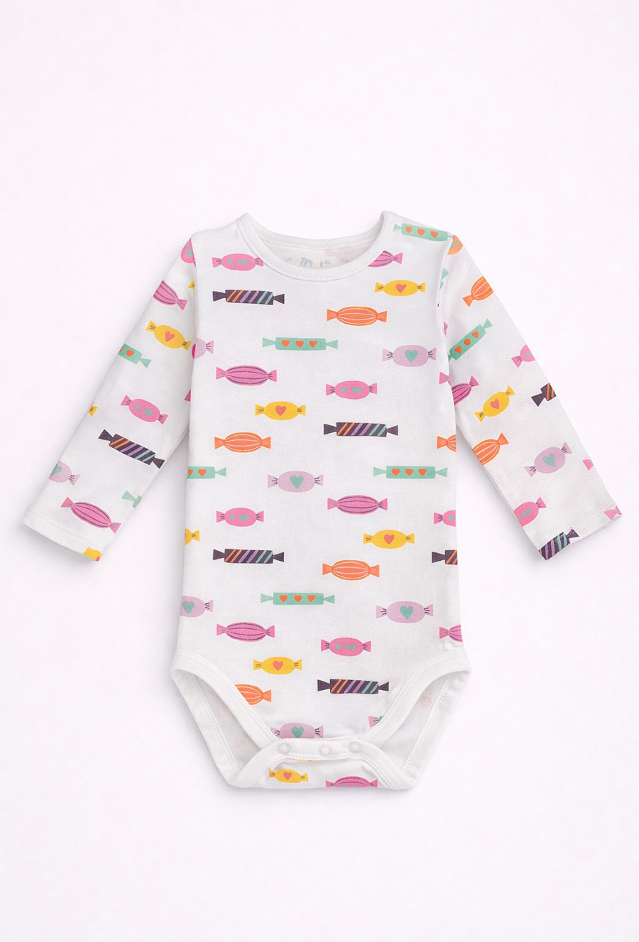Białe body niemowlęce z nadrukiem w cukierki
