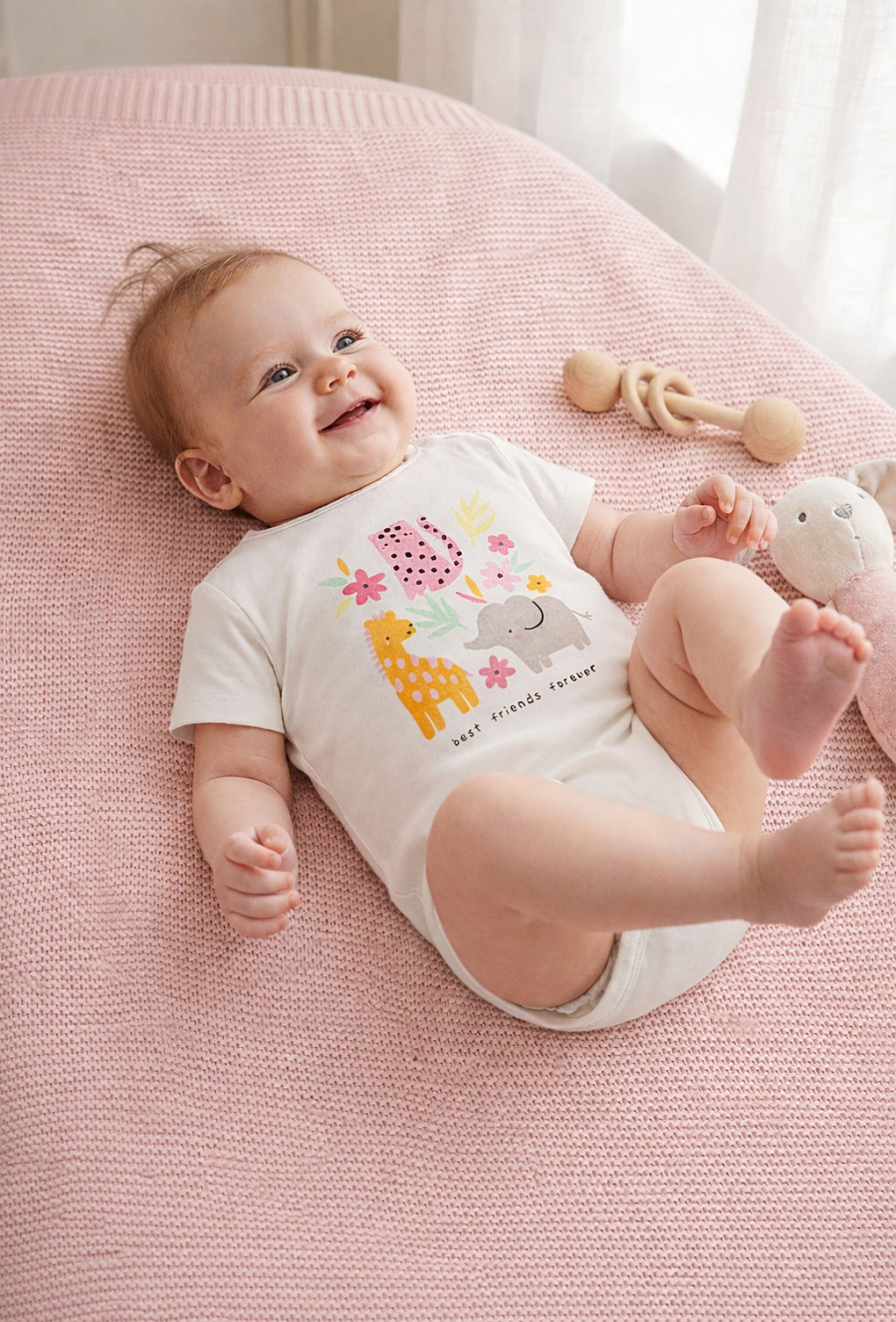 Body dla dziewczynki z krótkim rękawem to idealna baza letnich stylizacji. oraz na chłodniejsze dni pod sweterek i kurtkę. Wykonane z miękkiej, przewiewnej dzianiny, zapewnia maluchowi komfort i swobodę ruchów. Praktyczne zapięcia na ramieniu i w kroku umożliwiają szybkie i wygodne przebieranie, dzięki czemu body sprawdzi się na co dzień – od spacerów po zabawy w domu.