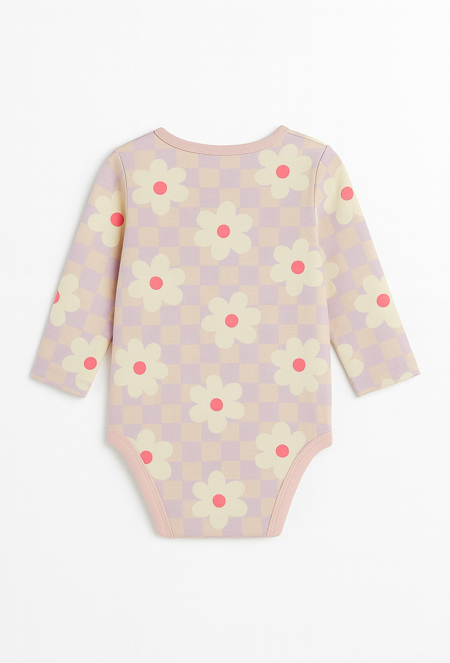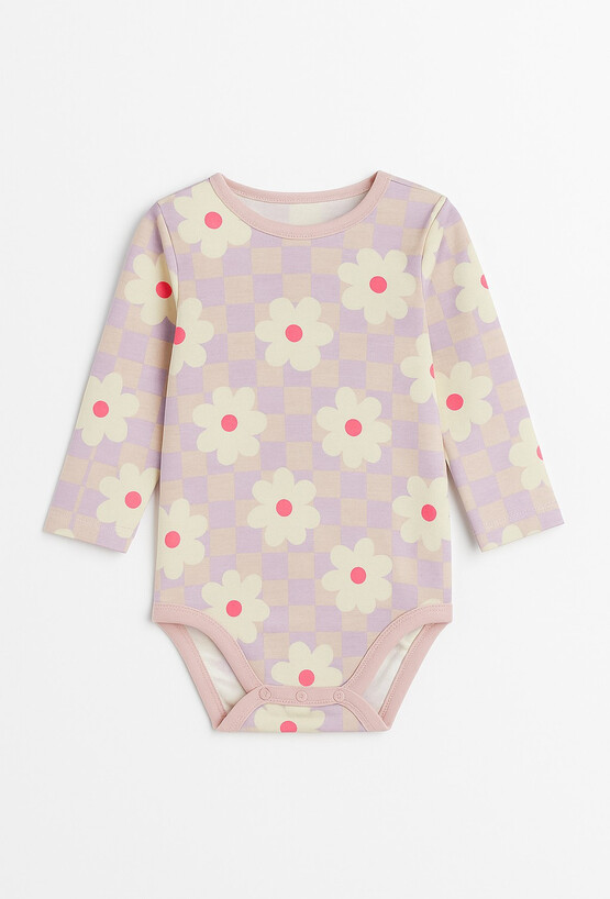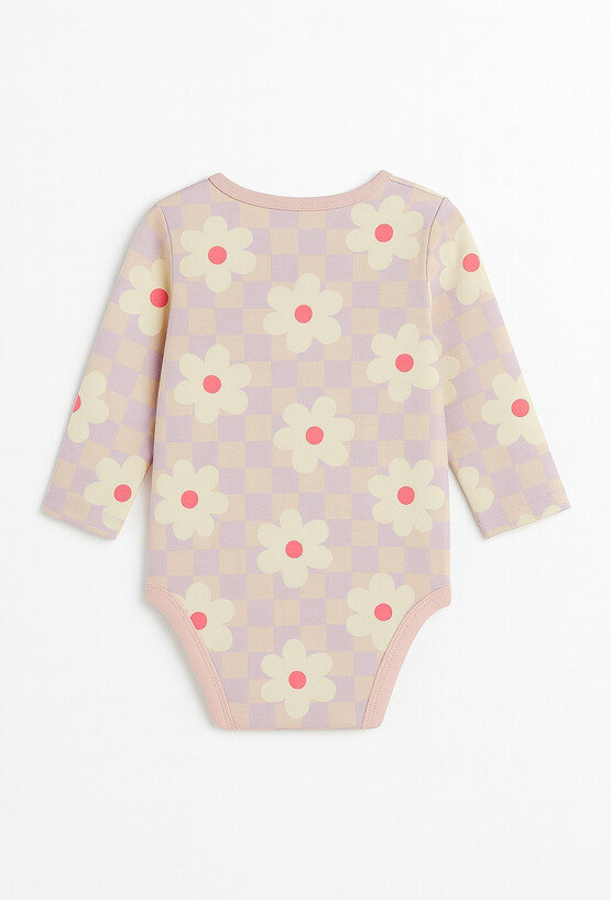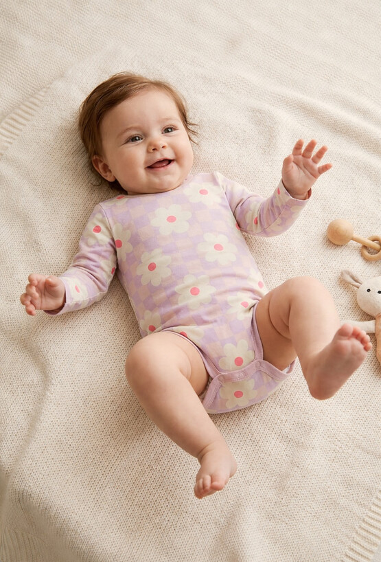 Body niemowlęce z długim rękawem w kwiatki – fioletowe