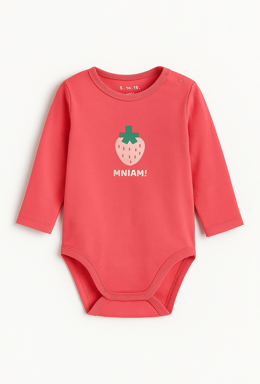Body niemowlęce z długim rękawem w truskawkę „MNIAM!”