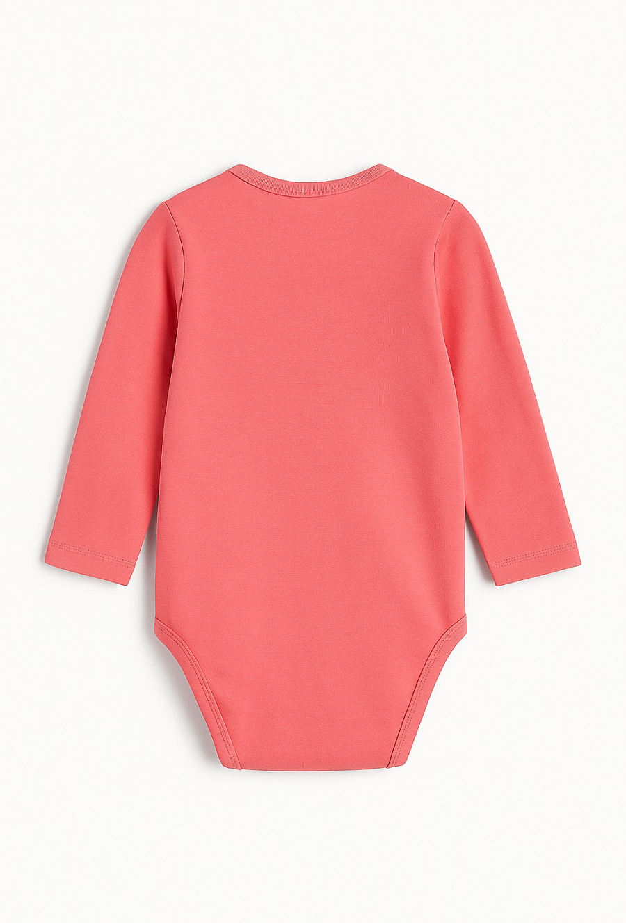 Urocze różowe body niemowlęce z długim rękawem to idealna propozycja na co dzień dla najmłodszych. Ozdobione truskawkowym printem oraz zabawnym napisem „MNIAM!”, przyciąga uwagę i dodaje stylizacji radosnego charakteru. Body zostało wykonane z miękkiej, elastycznej dzianiny bawełnianej z dodatkiem elastanu. Praktyczne napy w kroku ułatwiają przebieranie i zmianę pieluszki, a klasyczny krój sprawia, że body świetnie sprawdzi się zarówno jako samodzielny element stylizacji, jak i baza pod bluzy czy sweterki. To wygodny i funkcjonalny wybór, który łączy komfort noszenia z uroczym, dziecięcym designem.