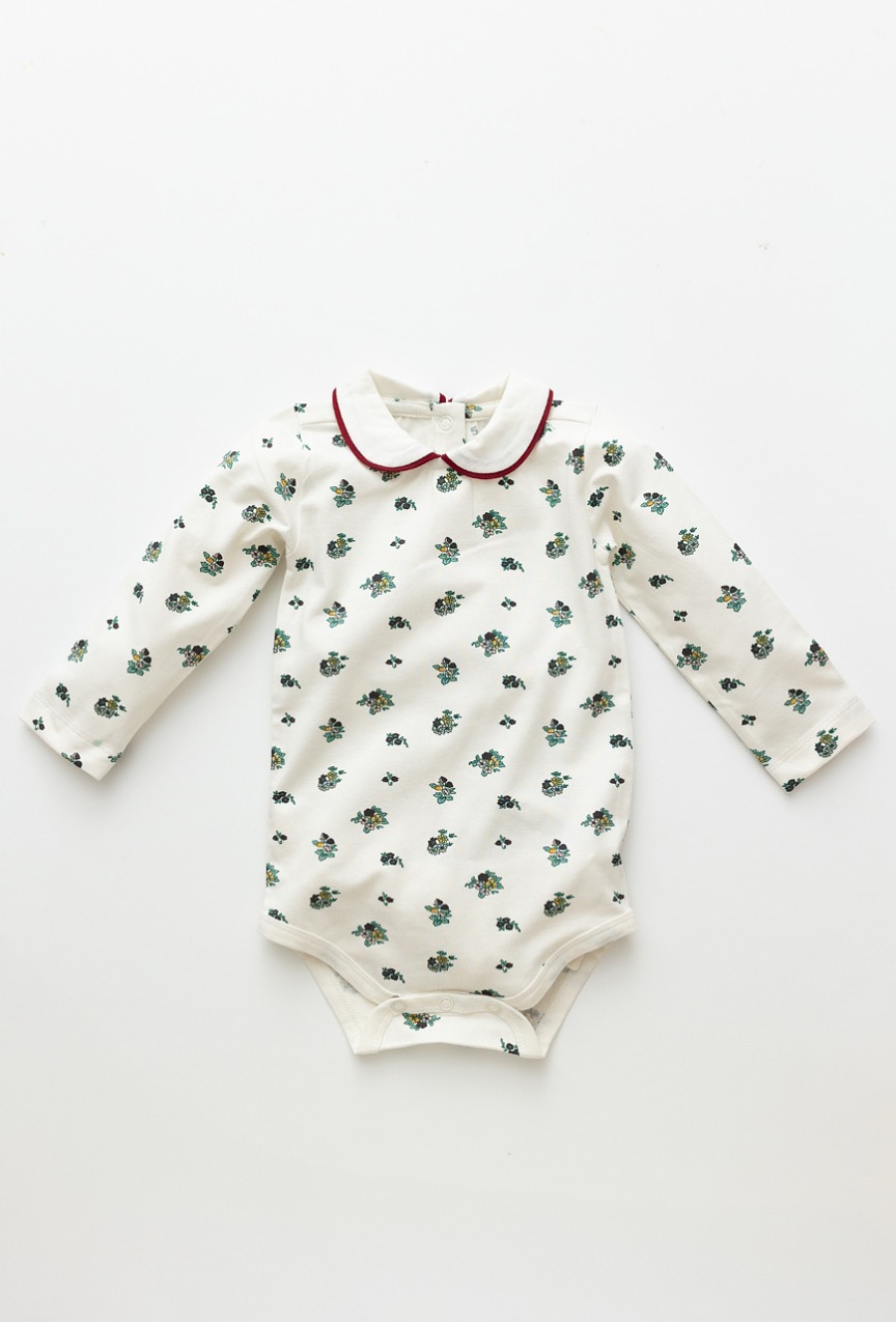 Eleganckie body niemowlęce z długim rękawem to połączenie wygody i subtelnego stylu. Delikatny nadruk all over print w kwiatuszki nadaje mu dziewczęcego uroku, a klasyczny kołnierzyk z kontrastową lamówką sprawia, że body doskonale sprawdzi się również na wyjątkowe okazje. Wykonane z miękkiej, elastycznej dzianiny – 95% bawełny i 5% elastanu – jest przyjazne dla wrażliwej skóry dziecka i zapewnia pełen komfort noszenia. Praktyczne zapięcia ułatwiają przewijanie i przebieranie maluszka. Idealne do rajstopek, legginsów czy spódniczki – zarówno na co dzień, jak i na uroczystości rodzinne.