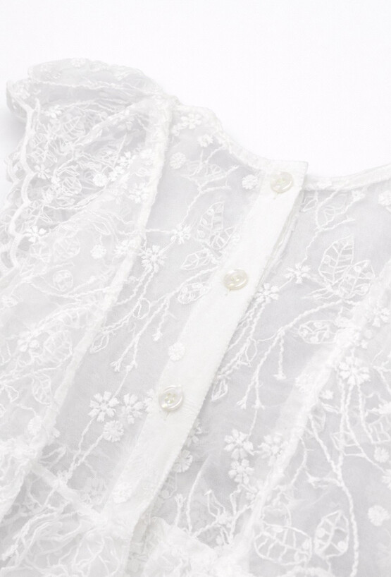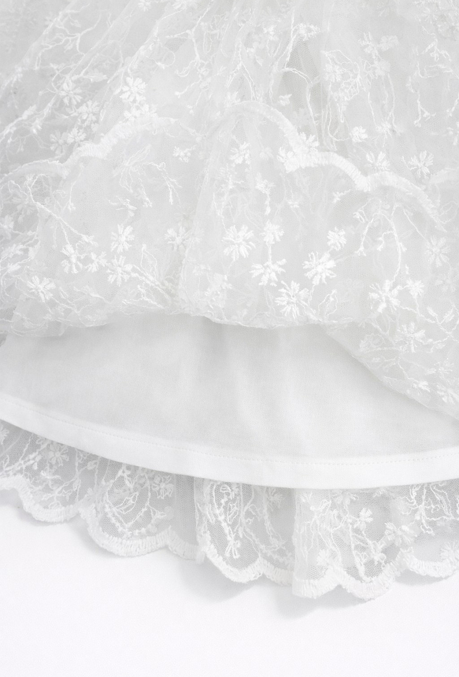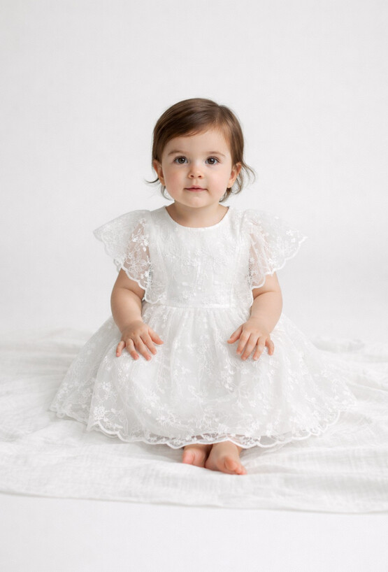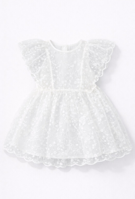Delikatna, biała sukienka niemowlęca dla dziewczynki, która pięknie układa się w ruchu. Tiulowa warstwa z subtelnym haftem nadaje jej wyjątkowo odświętny charakter, a lekka konstrukcja sprawdzi się także na co dzień – gdy chcesz dodać stylizacji odrobiny „wow”.