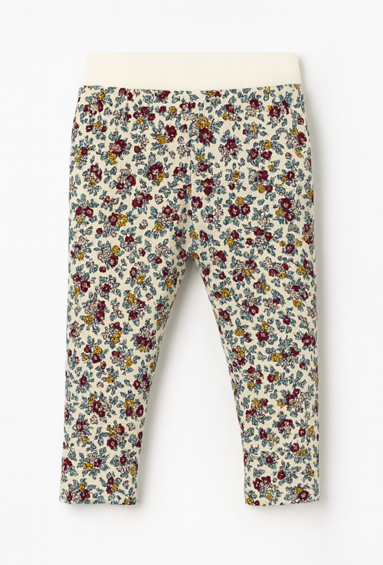 Wygodne i stylowe dziewczęce spodnie dresowe w kolorze białym z kolorowym nadrukiem w kwiaty. Wykonane w 100% z miękkiej i przewiewnej bawełny – idealne na każdą porę roku. Model z elastycznym pasem, który zapewnia wygodę noszenia i swobodę ruchu. Doskonały wybór na co dzień: do przedszkola, domu, spacerów czy aktywnej zabawy.
