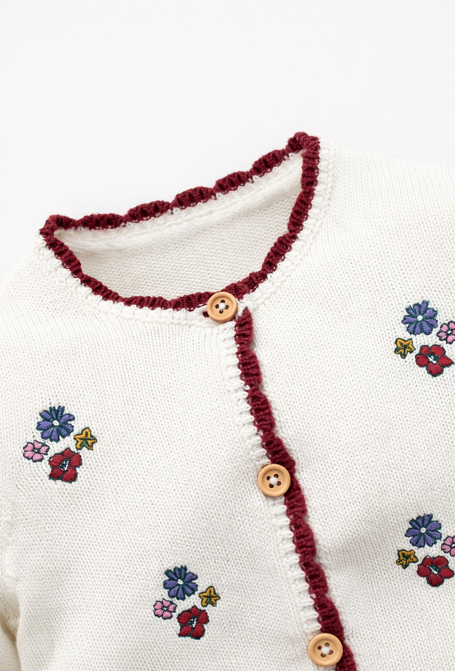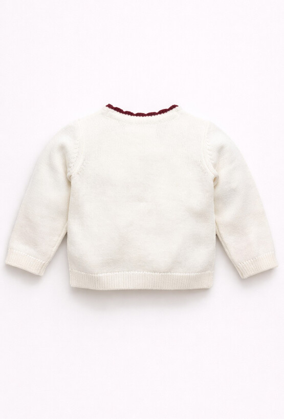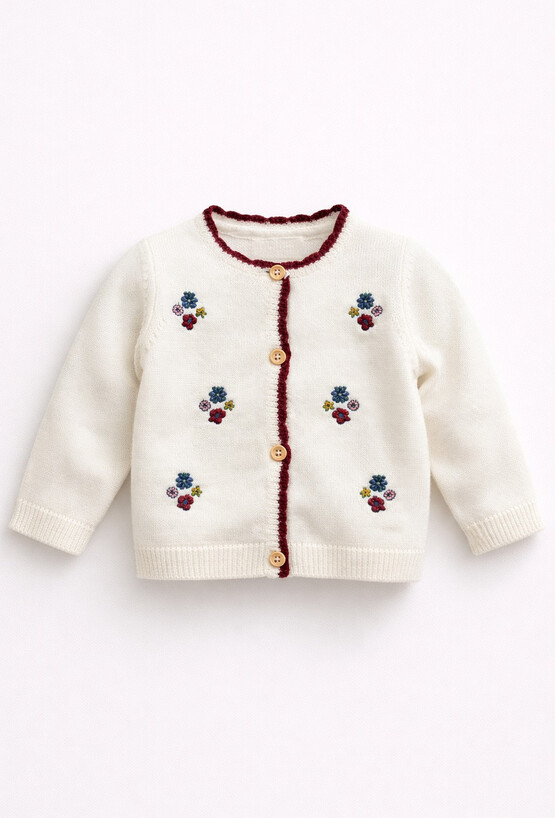 Ecru kardigan niemowlęcy z haftami i ozdobnym wykończeniem