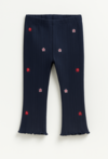 Granatowe legginsy dziewczęce z kwiatowymi naszywkami.