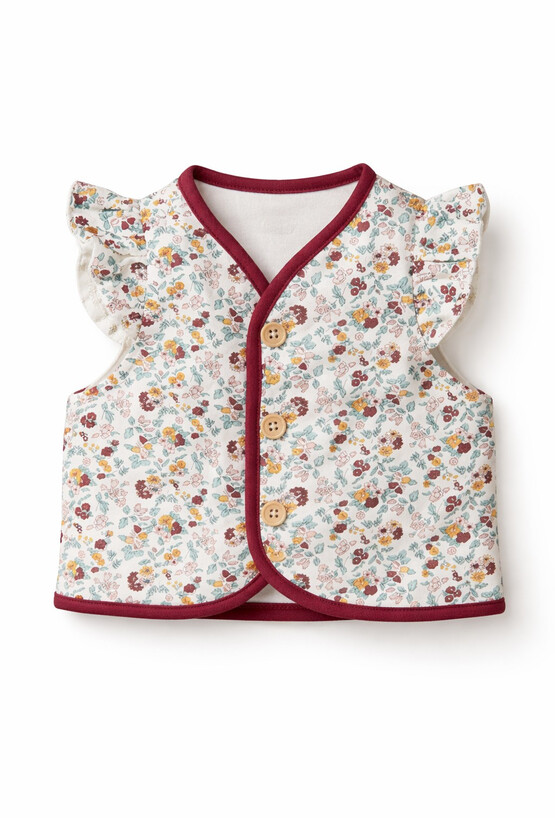 Kamizelka niemowlęca z falbankami – kwiatowy wzór.