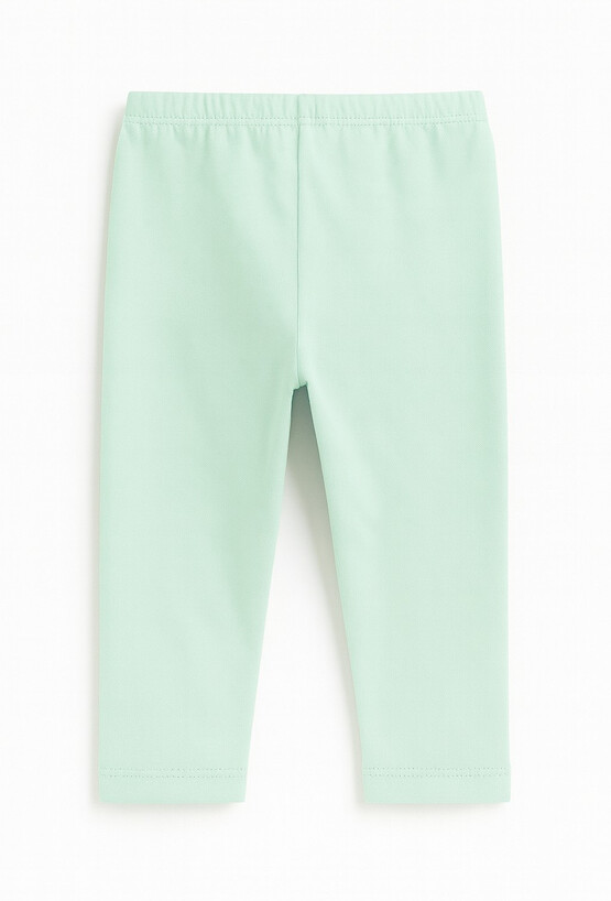 Zielone, jednokolorowe legginsy niemowlęce wykonane z bawełny z dodatkiem elastanu to wygodna propozycja do codziennego noszenia. Prosty, uniwersalny fason sprawia, że legginsy łatwo zestawić z body, bluzką lub tuniką. Miękka tkanina jest przyjemna w dotyku i delikatna dla wrażliwej skóry niemowlęcia.