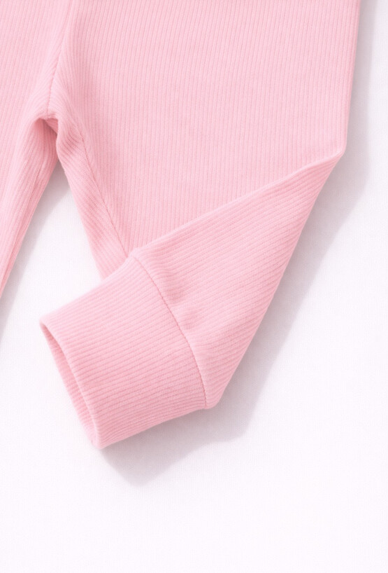 Miękkie i elastyczne legginsy niemowlęce GROW WITH ME w delikatnym, różowym kolorze. Uszyte ze strukturalnej dzianiny w prążek (95% bawełna, 5% elastan) dopasowują się do ciała i zapewniają pełną swobodę ruchów podczas zabawy i drzemek. Szeroki, wygodny pas dobrze trzyma się na brzuszku, a wykończenie nogawek mankietami pomaga utrzymać legginsy na miejscu. Idealne jako baza codziennych stylizacji – do body, bluzek i bluz.