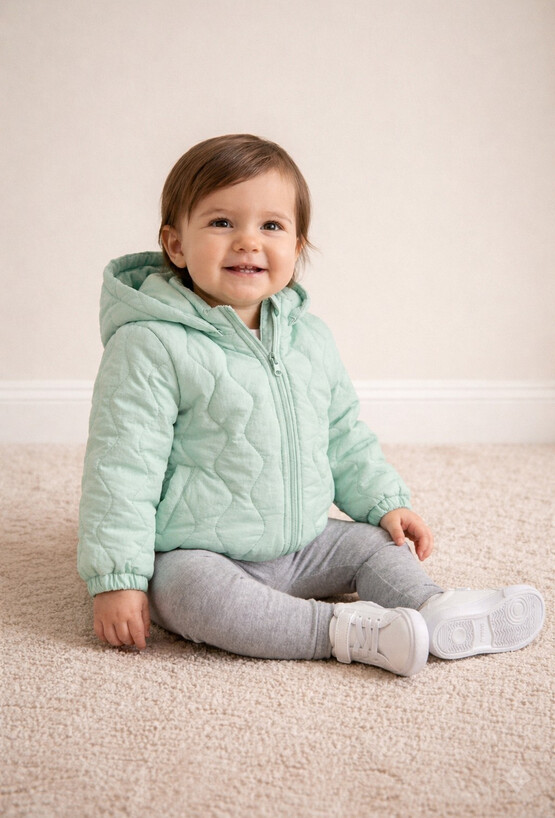 Pikowana kurtka w pastelowej zieleni to połączenie uroku i wygody. Miękka i lekka, idealnie sprawdzi się w chłodniejsze dni, zapewniając maluszkowi ciepło i swobodę ruchów. Delikatny kolor dodaje subtelnego stylu, a praktyczny fason sprawia, że kurtka jest wygodna do codziennego użytku – doskonała na spacery i rodzinne wyjścia.