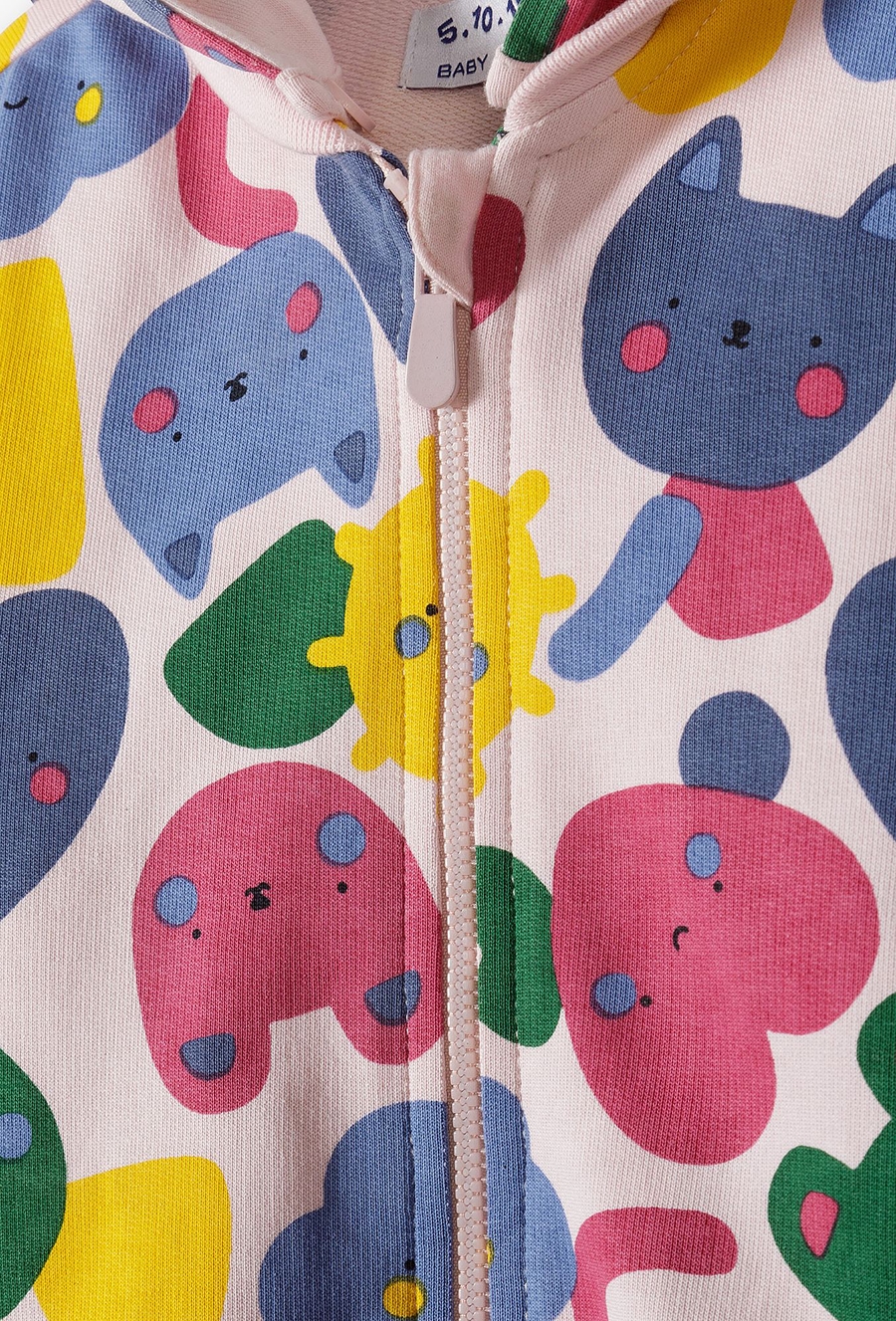 Różowa bluza niemowlęca w koty z odpinanym kapturem