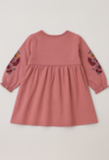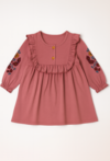 Różowa sukienka dziewczęca z haftem i falbanką.