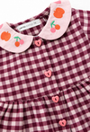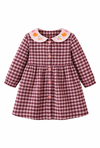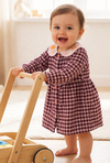 Różowa sukienka niemowlęca w kratkę z haftowanym kołnierzem