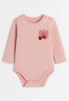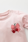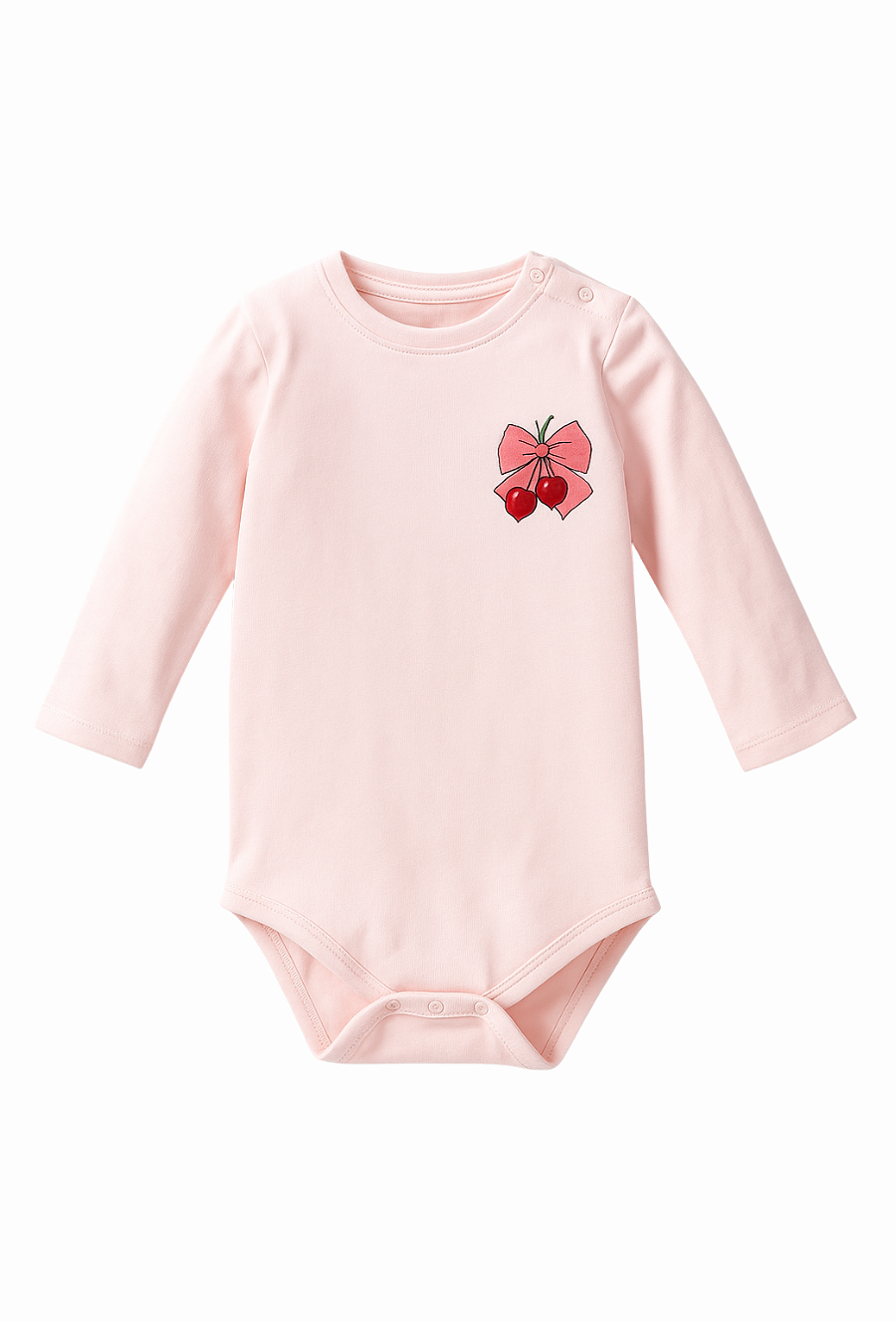 Różowe body niemowlęce z nadrukiem kokardki i wisienek