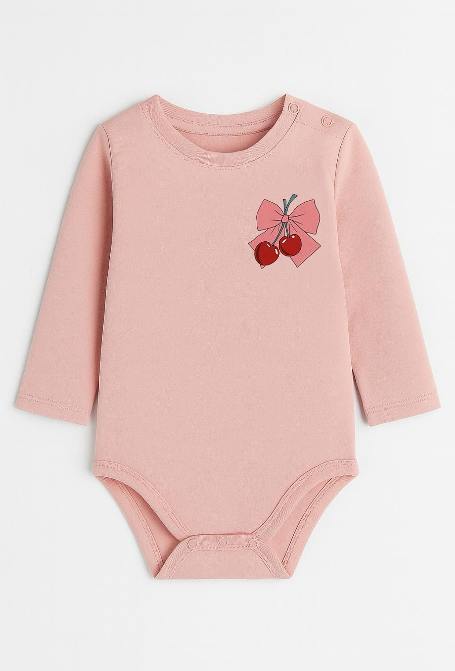 Delikatne różowe body niemowlęce z długim rękawem to wygodne i stylowe ubranko na co dzień. Uroczy, mały nadruk kokardki z wisienkami dodaje dziewczęcego uroku, a klasyczny fason sprawia, że body świetnie pasuje do legginsów, spódniczek i spodni. Wykonane z miękkiej i elastycznej dzianiny – 95% bawełny i 5% elastanu – jest przyjazne dla wrażliwej skóry dziecka i zapewnia pełen komfort noszenia. Praktyczne zapięcie w kroku ułatwia przewijanie i przebieranie maluszka. Idealne do codziennych stylizacji, zarówno w domu, jak i na spacerze.
