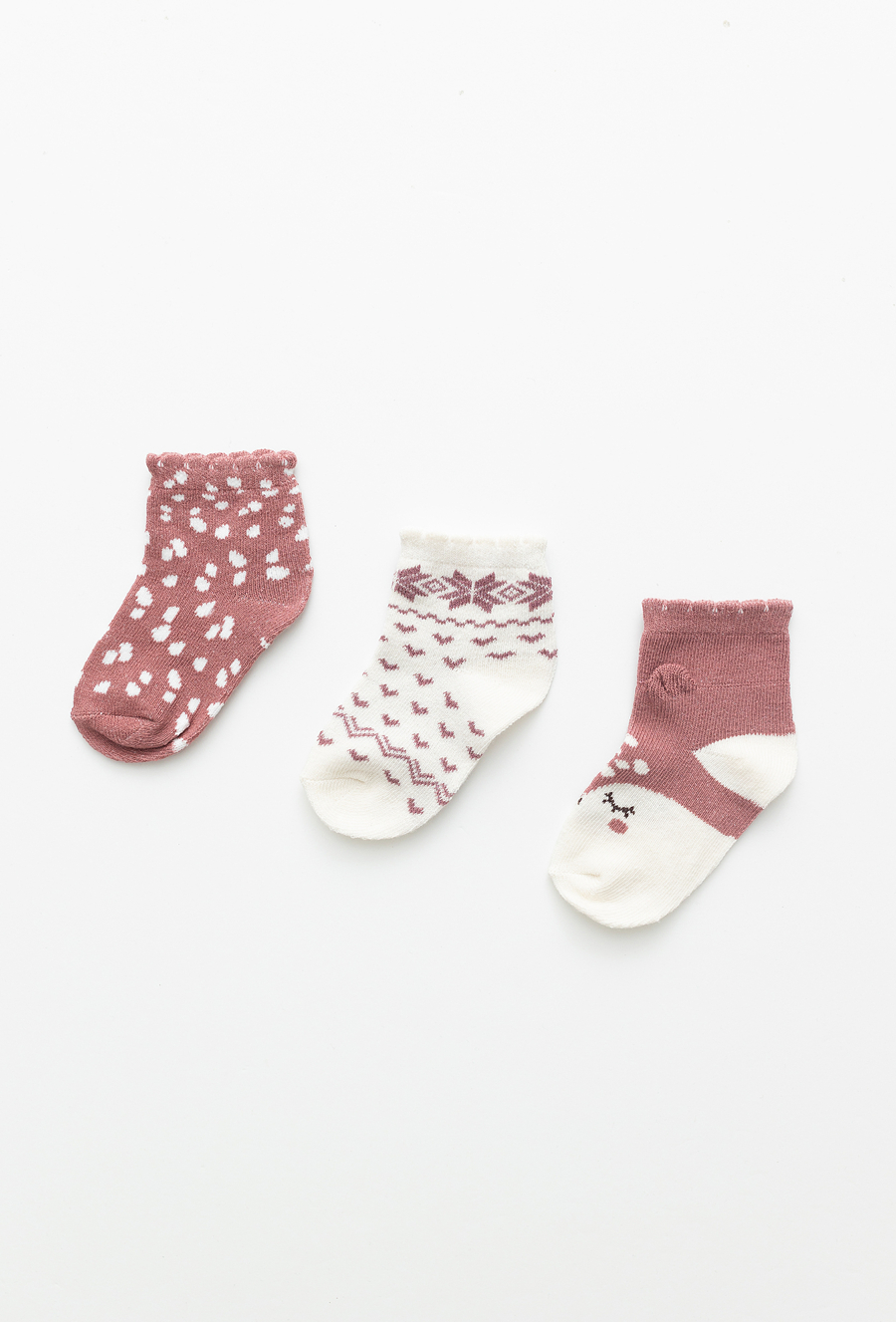 Skarpetki niemowlęce 3-pak brązowe – motyw jelonka.