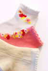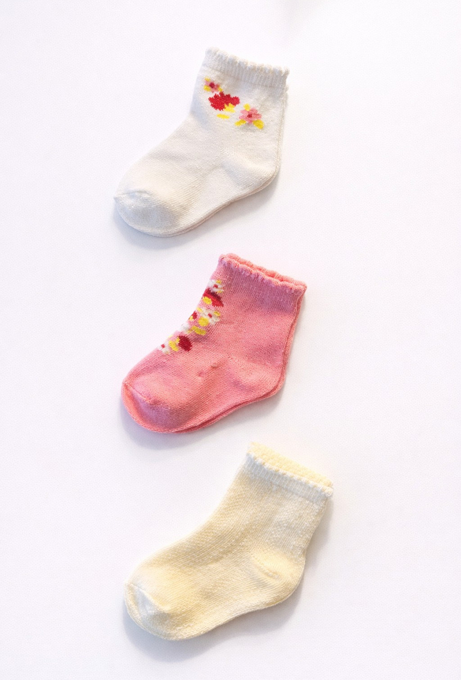 Pastelowy zestaw skarpetek dla dziewczynki w praktycznym 3-paku to uroczy dodatek do codziennych stylizacji. W komplecie znajdują się trzy pary: białe z kwiatowym motywem, różowe w delikatne cętki oraz żółte – idealne do mieszania i dopasowywania do ulubionych zestawów. Skarpetki są miękkie i komfortowe, a ozdobne wykończenie przy ściągaczu dodaje im dziewczęcego uroku. Świetnie sprawdzą się do trampek, sneakersów i balerin.