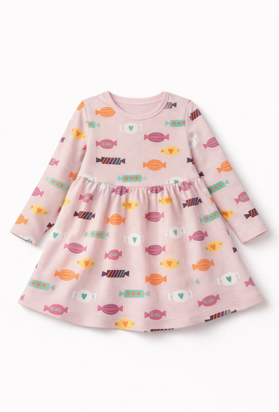Sukienka dziewczęca z długim rękawem - w cukierki