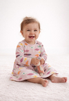 Dodaj odrobinę słodyczy do codziennych stylizacji! Ta dziewczęca sukienka z długim rękawem wykonana w 100% z miękkiej, oddychającej bawełny zachwyca kolorowym nadrukiem w cukierki. Klasyczny, lekko rozkloszowany krój zapewnia swobodę ruchów podczas zabawy i spacerów. Dzięki elastycznej dzianinie oraz wygodnemu fasonowi, sukienka jest niezwykle komfortowa, a jednocześnie prezentuje się stylowo. Idealna na co dzień, do przedszkola czy na rodzinne spotkania – sprawi, że każda mała miłośniczka kolorów i słodkości poczuje się wyjątkowo.