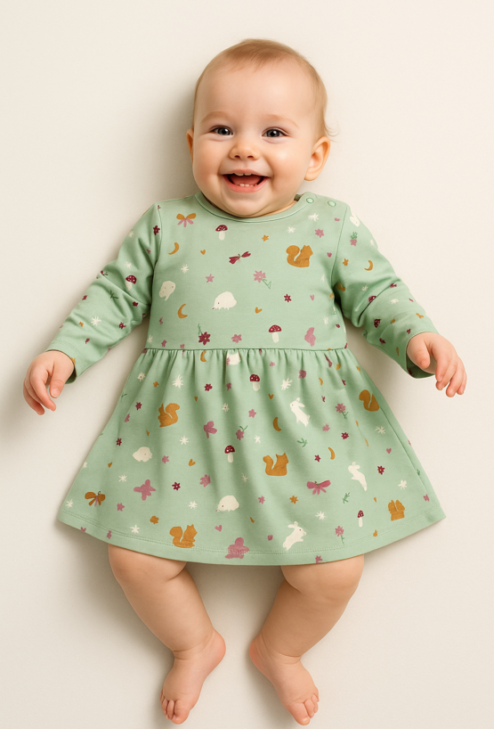 Sukienka niemowlęca z długim rękawem i leśnym wzorem